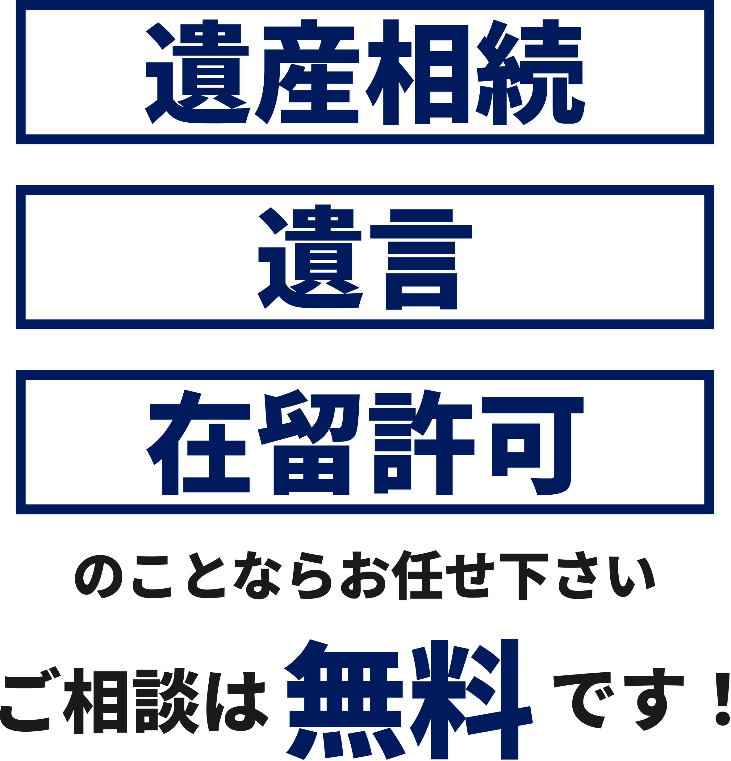 遺産相続・遺言書作成・在留許可取得でお困りでしたら、ぜひ西大島行政書士事務所におまかせ下さい。ご相談は無料ですので、まずはお気軽にお問合せ下さい。